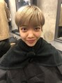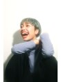 ブリーチ後にセクションを分けてブルーを入れたコントラストショートマッシュヘアです。耳まわり、襟足はすっきりカットして頭をコンパクトにまとめています。