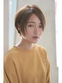 顔周りの髪を長めに残し、バックは切り込んでスッキリ。頭の形を綺麗に見せるようにカットしたショートボブヘア。カラーは7レベルのグレージュで赤味を抑え、ツヤ感と柔らかさを。