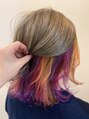 全体的にブリーチをして、インナーだけ、PINK、ORANGE、YELLOW、VIOLETいれてます!ベースは、ベージュでインナーが際立つ色にしてあります!