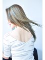 コスメの薬剤で縮毛矯正している髪に、ケアブリーチを使ったハイライトの上からNODIAの塩基性のカラーをのせています。