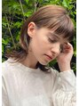 レイヤーが入ることでミディアムでも抜け感や動きのあるひし形シルエットに。重め前髪にフェイスフレーミングのローライトで引き締め効果とモード感が◎30代、40代の大人ミディアムにオススメ!