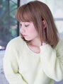 丸いシルエットで柔らかさを出したミディアムスタイル。 バングが重ためにしてある分表面に少しレイヤーを入れて軽さと重たすぎないように透け感をプラスしています♪カラーも透け感のあるベージュで柔らかい印象に♪