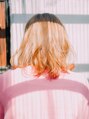 スタイルてきには全体的に重めのスタイルになっています! カラーリングを明るくすることで軽く見せてバランスを☆ つるんとしたフォルムがかわいいスタイルに! 伸ばしていて鎖骨ぐらいではねてしまう方にオススメのスタイルです!