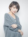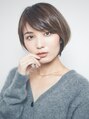 前髪をややダブルバングにしたシンプルなショートヘアスタイル。ベージュベースにハイライトと顔周りとポイントでローライトを入れました。シンプルなカットだからこそ、デザインカラーで奥行きを持たせます。