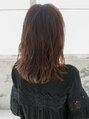 束感のシースルーが目を引くセミディスタイル。オイルとバームでウェットな質感に仕上げています。全体にゆるく大きめのウェーブをつけてふわっとさせることにより、のっぺりした印象にならないようにしているのがポイント!