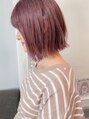 肩上ラインの切りっぱなしボブカラーはブリーチ1回でできるピンクベージュ★