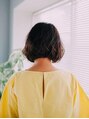 ワンレングスベースの前下がりボブ。バングも長めで大人っぽい印象です♪重たくなりすぎないように毛束に空間を持たせるよう仕上げました。全体的にゆるめのパーマをかけています