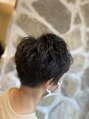 刈り上げのショートスタイル。あえてゆるめに、セットしやすいようにかけたパーマ。毎日のスタイリングを簡単にしたい直毛さんにオススメです。
