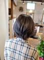 カットは肩につかないくらいに短く、段を付けて、量をすいてスッキリ。カラーは元が明るかったので、ガッツリアッシュグレーを入れてかっこよくなりました☆