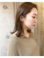 あまりコテに頼らずにラフに仕上げた鎖骨ラインのミディアムスタイルです。肩についてハネても、動きとして生かせるヘアスタイルです。カラーはベージュがメインの少しアッシュを混ぜた髪の透明感が出やすい色味にしました。