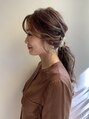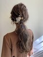 ローポニーテールでもトップと毛先はクリンと巻いてふんわりしたイメージのアレンジスタイル☆