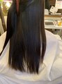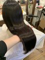 髪への負担が強い縮毛矯正を可能な限り安全に癖を伸ばす独自手法で行います。毛髪の余力を如何に残すかを第一に、悩ましい癖を伸ばします。硬くなりやすい縮毛矯正ですが、毛先まで柔らかくしなやかな質感が喜ばれます。