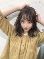 ミディアムレングスのパーマ風アレンジ前髪はシースルーのフルバングで巻きやすいように全体の毛量を整えてます。カラーは秋冬に人気暗めのこっくりブラウン。