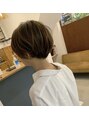 マッシュのショートスタイルです。カラーはハイライトの入ったベージュカラーです。
