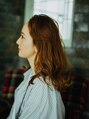 かきあげ前髪のカジュアルカールスタイルです。カラーが10トーンのベージュゴールドがベースでハイライトが細く細かく入っています。スタイリングは前髪が長いのでボリュームが出づらいので根元を起こすようにドライヤーをかけるのが◎