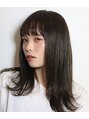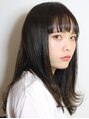 ラフロングにライン感のあるバングを組み合わせたスタイル。毛先はワンカールさせて軽さをプラス。セミウェットな質感に仕上げて今っぽい表情に。