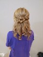 ハーフアップ 編み込み 結婚式 ダウンスタイル 巻き髪