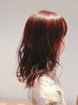 2020秋冬人気色。艶感のあるレッドブラウン。カットデザインは秋冬のお洋服に合う重さのあるAラインスタイルを外ハネベースのユルフワスタイルに。