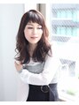 Aラインのカットで、巻きやすいように量感調整で毛先の方にあつみを残しながら減らすことでまとまりやすくしています。前髪は、オン眉にカットしてますが可愛らしさが出過ぎないように束感など意識して軽くしています。