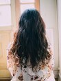 重ためベースのワンレングスに軽めのレイヤーをいれた重軽セミロングスタイルです。スタイリングはトップにボリュームが出るようにドライし太めのコテで波ウェーブになるようゆるく巻きます。