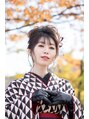 高さを出したスタイル。顔まわりのゆるふわで柔らかい印象に