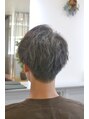 えりあしを刈り上げすぎずに少し残した、マッシュベースのカットに、アイロンでを縦に挟んで、ソフトツイスト風に巻いて仕上げました。
