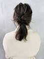 サイドに寄せ、くるりんぱでラフポニーに。【気に入ったスタイルは「ブックマークする」ボタンを押して、ご来店時ご提示ください】暖色系カラー,パープルカラー,艶カラー,ショートバング,春カラー,外人風カラー,ハイライトグラデーション,シアーカラー