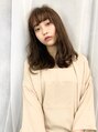 顔周りのレイヤーで輪郭カバーして小顔に仕上げたくせ毛風セミディ。肩のラインのぽてっとしたくせ毛風カールが重めかわいい。シースルーバングで透け感を出してエアリーな動きを出して。黒髪やオリーブアッシュでモードクラシカルに決めるのが大人かわいい。