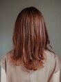 ミディアムロングのレングスに少し強めの大きめカールをプラスし全体の動きをプラスしました!ヘアカラーのオレンジ系ブラウンで落ち着きとグラマラスを演出!ミディアムで飽きてしまった方にオススメです!