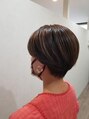 ショートボブに、ハイライトをプラスして、いつものカラーに飽きた方や、何かちょっとの変化が欲しい方にオススメです!ケアブリーチを使ってダメージを限りなく抑え、色落ちも楽しめるスタイルです!