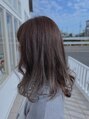 ティントバーにて。【カラー剤】ノーブルグレー☆透明感カラーです。コテで遊びをつけやすいようにスライドカット☆セニングを使わずに、丁寧に質感調整致します☆