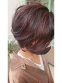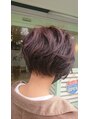 クールなのに女性らしさも残したショートです♪襟足はギリギリまでつめてスッキリさせますが、丸みをしっかりだして女性らしさを残します。カラーは表面にハイライトを入れてから、全体にバイオレットアッシュ系でまとめています。