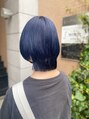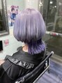 ボブスタイルだった髪型を、クラゲのようなウルフカットに仕上げ、もともと髪色の明るい方でしたので、根元のみブリーチリタッチしたのちに、襟足を暗め紫、上をパープルシルバーという、カットスタイルに合わせたカラーにいたしました。