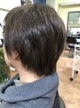 大人女性のショートレイヤー。全体にレイヤーをいれてボリューム、動きの出るようにカットしてあります☆ブラシなどは使ってなくて自然に乾かしただけで写真のまとまりです♪