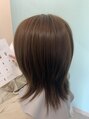 透明感シルクベージュ赤み消しカラー大人可愛い外ハネミディ