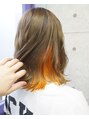 インナーカラーオレンジ×波打ちウェーブボブ