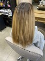 夕方5時30分にあえて暗い中でiPhone11proの力で撮影しました。オレンジ灯の下での撮影でしたが黄色味を飛ばした無彩色系のグレージュになりました。ブリーチ履歴のメンテナンスカラーもお任せください!