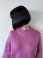 重ためあごラインボブ。ノースタイリングでも決まるヘアスタイル。カラーは重たさをわざと出すプラチナブラックで*