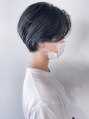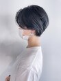 ブルーブラックで軽く立体感のあるショートヘアに。襟足をスッキリさせ大人っぽスタイルに。