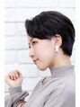 アップバングショートスタイル。ダークなラベンダーカラーを軽やかに表現。重くなりすぎない暗髪スタイル。