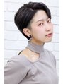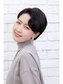 アップバングショートスタイル。ダークなラベンダーカラーを軽やかに表現。重くなりすぎない暗髪スタイル。