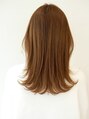 やや前下がりにカットした切りっぱなしスタイルあえてカットラインを残す事で毛先に厚みがでてオシャレ度UPカラーは全体にハイライトを入れて、グレージュカラーに!