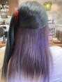 表面はダークトーンでサラサラに見えるカラーに、内側はがっつり紫をいれ、お洒落なインナーカラーに仕上げました!