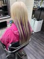 地毛の色に合わせたお色と原色のエクステを混ぜて、胸下の長さで仕上げました。