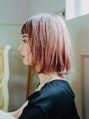 流行りのオン眉ボブに赤のカラーを入れたオシャレボブ大きめカールのパーマをプラスすることで、強すぎない女性らしさを出しています少し人とは違うおしゃれ感を出したい方にオススメスタイル! ブリーチカラーで透明感をプラス!