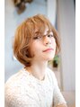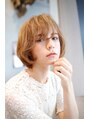 明るいトーンのカラーに、コロンとしたフォルムのやわらかなフェミニンボブ。優しく女性らしい曲線で輪郭カバーして小顔に。程よい束感のあるフリンジバングと合わせれば、トレンド感あるガーリーボブの完成。目元を強調して甘え顔が似合うモテ髪に。
