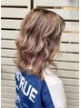 定番ミルクティーに色馴染みのいいピンクとムラサキのメッシュカラーをミックス☆色が落ちても可愛いミックスカラーです!カラーバター+3000円から