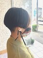 人気急上昇中の韓国風カラーリング◎フロントの一部分だけをカラーリングするだけで一気におしゃれ度アップ!ラインを残した前下がりのハンサムショートstyleでさらにモード感を◎