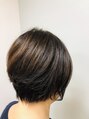 ゆるやかなクセを生かして前下がりショートで、トップはふんわりに、えり足はタイトにラフ感とまとまり感のあるスタイルです。