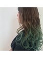 グリーンのグラデーションカラーは目立つこと間違いなしの派手髪です!